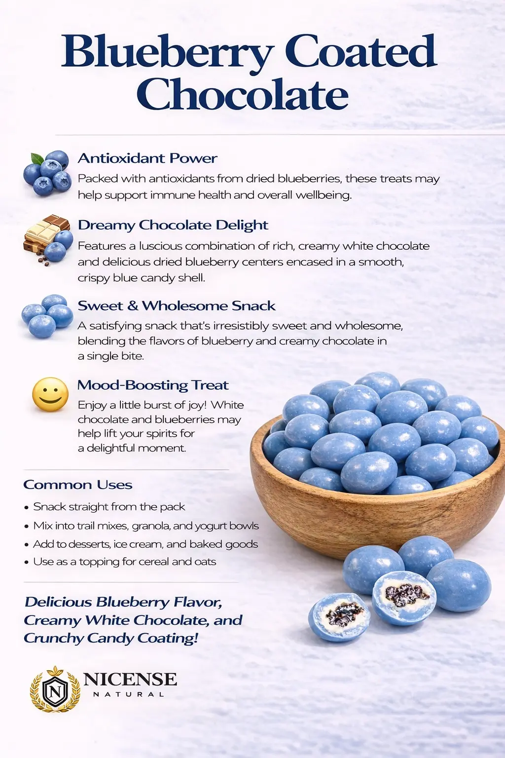 Blueberry Coated Chocolate – Crunchy Candy Shell with Creamy White Chocolate & Real Blueberry Centre | Premium Gourmet Snack by NICENSE