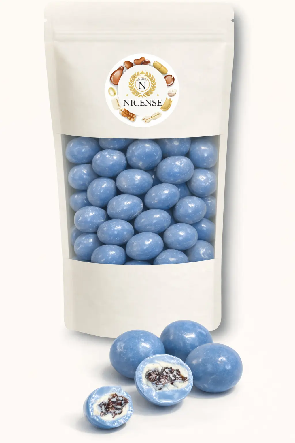 Indulge in a truly irresistible treat with NICENSE Blueberry Coated Chocolate — where flavour meets finesse. Each bite delivers a satisfying crunch from a smooth blue candy shell, followed by creamy white chocolate and a real blueberry centre that bursts with natural fruity goodness.